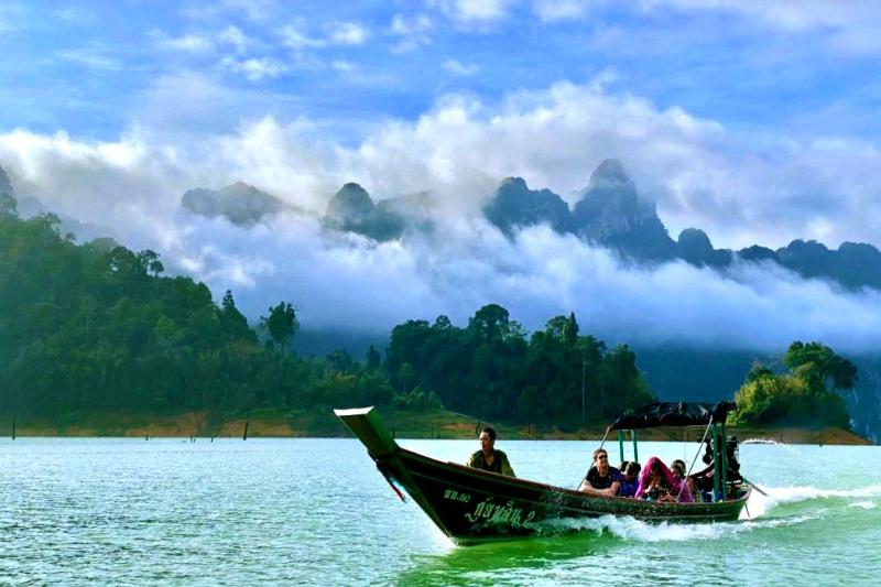 Bij aankomst van de pier van het Cheow Lan Lake. Hier krijg je de gelegenheid om snacks, drankjes en andere benodigdheden in te slaan voordat je aan boord gaat.Stap vervolgens in een traditionele longtailboot voor een prachtige tocht over het meer, op weg naar het beroemde "Guilin van Thailand" – een sprookjesachtig landschap van kalkstenen rotsformaties en kristalhelder water.