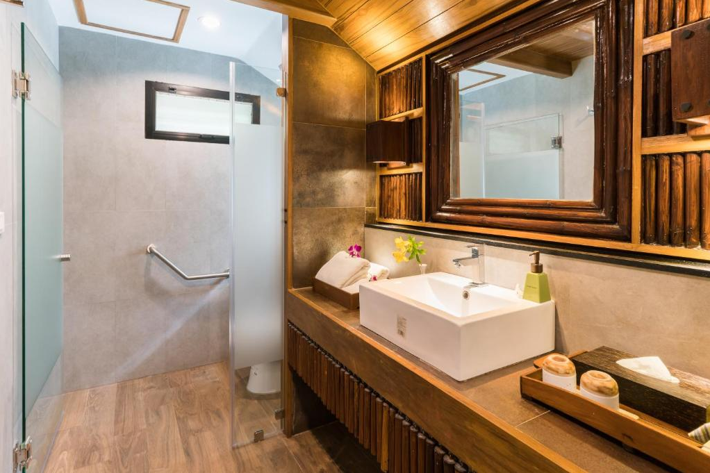 Dit comfortabele nieuwe kamertype is zeer ruim (61 m2), en ligt op de eerste verdieping in een chalet op een heuvel aan de rivier. Ze zijn uitgerust met een tweepersoonsbed. Verder met airconditioning, gratis internet, ventilator, televisie, kluisje, koelkast, koffie- en theezetfaciliteiten, haardroger, slippers, en een badkamer met douche (warm en koud water) en toilet. Ruim balkon met een mooi buitenligbad, vanwaar u een prachtig panoramisch uitzicht heeft op de River Kwai Noi!