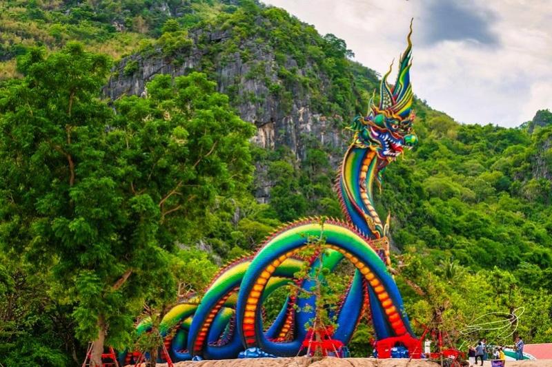 De privé dagtocht die moeiteloos Thaise natuur, grotten en bijzondere tempels combineert. Van het stuwmeer van Thailands grootste natuurpark reizen we ook naar het Wat Tham Jang met felgekleurde Naga-beelden gelegen tussen de bergen. In dit tempelcomplex bevindt zich een grote grot waar bezoekers mediteren in de hoop op geluk en voorspoed. Wie is daar niet naar op zoek?