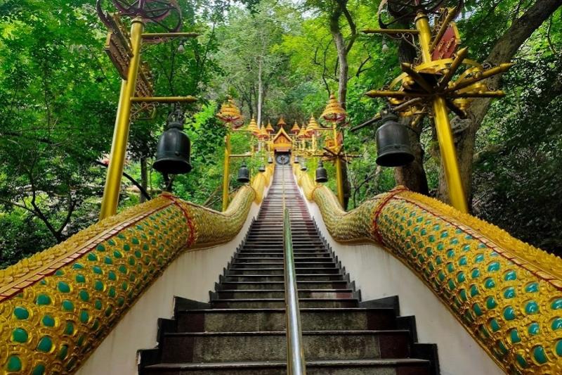 Niet te ver van Kaeng Krachan ligt een nog verrassend onontdekt tempelberg met prachtig beeldhouwwerk en vergezichten, kleurrijke muurschilderingen en een indrukwekkende grot. Je ontdekt er verhalen uit de Thaise boeddhistische geschiedenis, en oude koninklijke legendes. De grot op de berg, bereikbaar via de drakentrap, biedt een vredige plek om uit te rusten van de klim. Weer een sfeervolle stop vol cultuur en spiritualiteit. Op weg hier naar toe krijg je uitgebreid informatie over de verschillende soorten boeddhisme en de betekenis van de gebruiken.