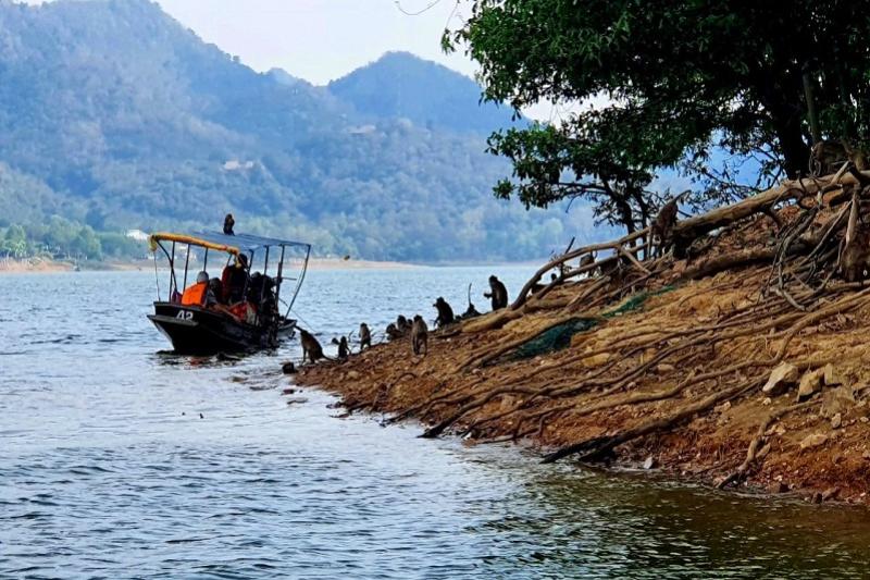De tweede stop is bij het stuwmeer van Kaeng Krachan National Park, met bijna drie duizend vierkante kilometer het grootste nationale park van Thailand. Het is een mooi uitzicht over het enorme meer en de vallei die sinds 1966 onder water staat en de omringende bergen. Over dit gigantische meer maken we een boottocht. Het ultieme fotogenieke moment van deze dag. Met een beetje geluk kunnen we apen spotten.